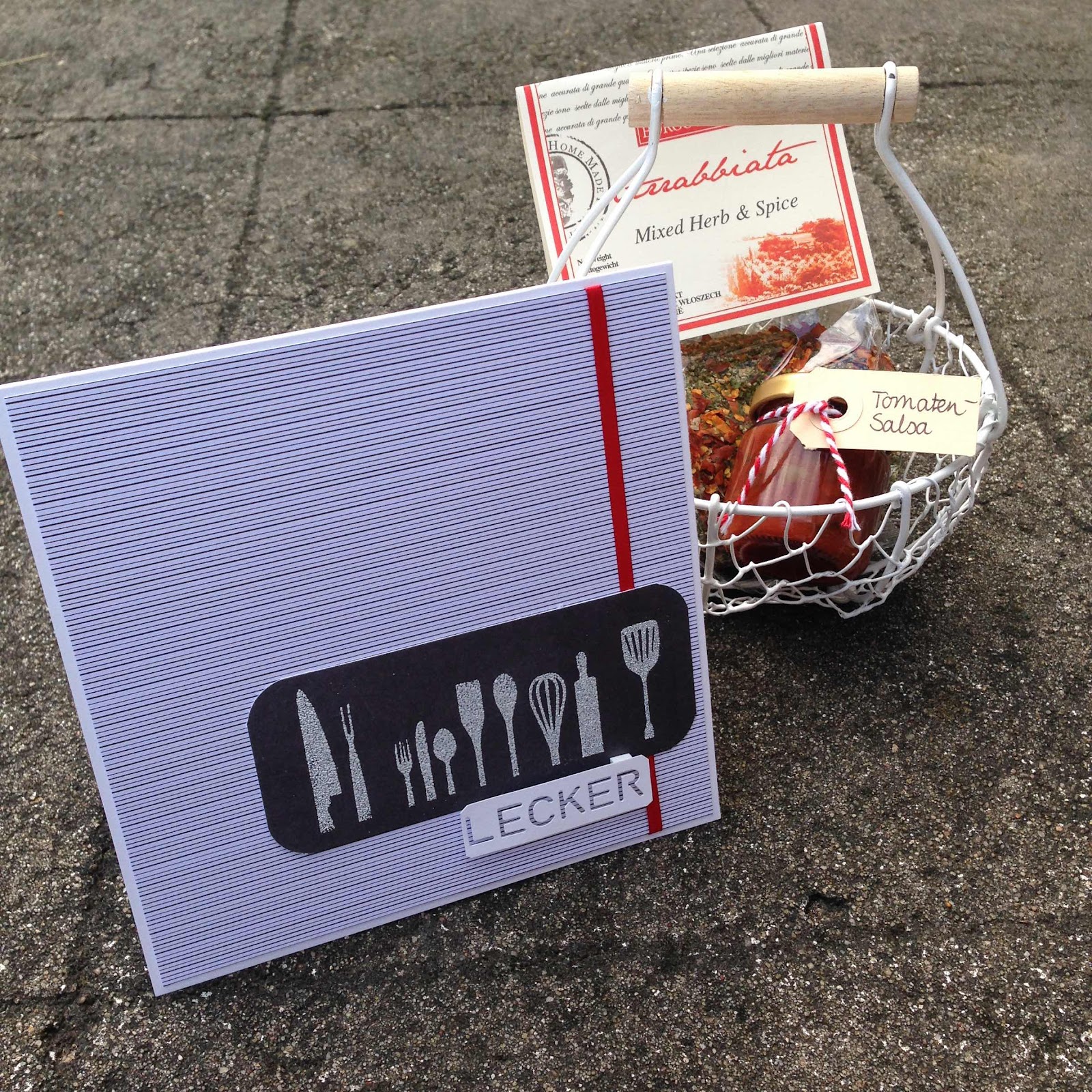 Zum Abschied eines Kollegen gab es ein Delikatessenpaket. Und natürlich die passende Karte.